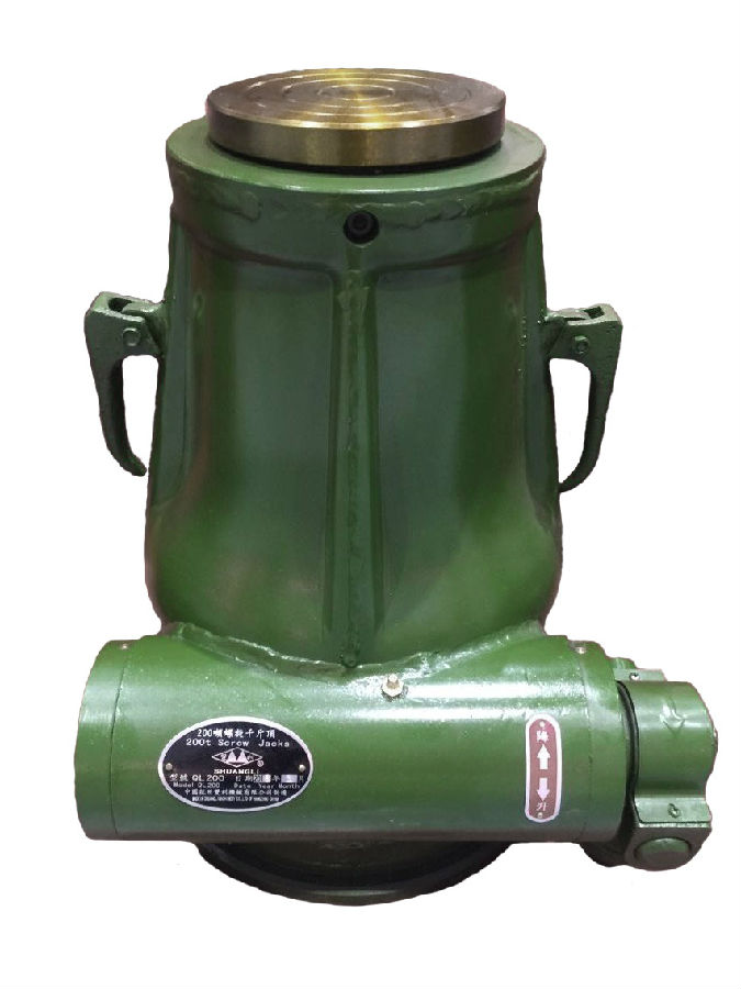 大噸位千斤頂外形有油壓、螺旋、齒條三種形式,螺旋式和油壓式兩種較為常用。齒條式千斤頂一般承載能力不大。螺旋式千斤頂起重能力較大,可達100t(1000kN)。油壓千斤預起重能力大,可達320t(3200kN)。