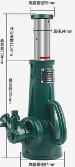 6、升降套筒全部升起時千斤頂的高度:330mm;