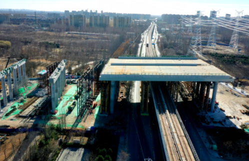 據了解該鋼箱梁的長度達到了77.5米,重量也達到了驚人的3868噸,其架設難度可想而知。京雄高速公路線路走向與地鐵房山線相交角度約78°度,以高架橋方式上跨地鐵房山線及國道107公路,跨徑138米,分左右兩幅布置,梁高2.625米,為超寬變截面曲線鋼梁,單幅最寬處34.326米,整個施工的頂推面積相當于7個網球場那么大。